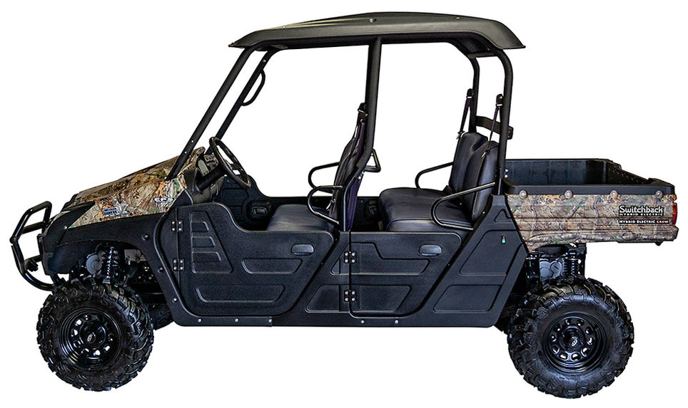 Here is the ultimate way to enjoy the outdoors. Seating for four and room for cargo too - there is no compromise with the clean, silent, and scentless power of the HuntVe Switchback 4x4 Crew. And when your batteries run low, start the exclusive range extending 460cc gas run quiet generator with the touch of a button.
